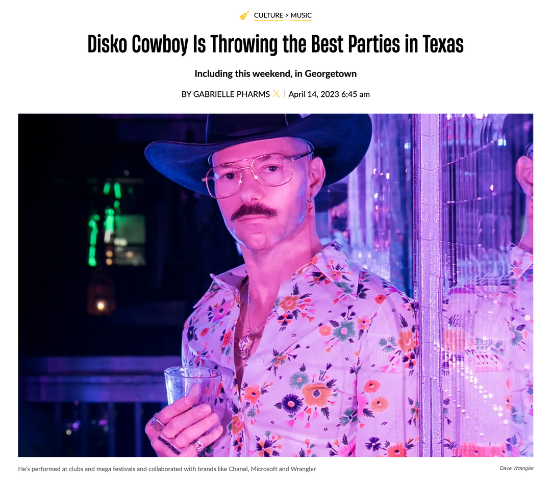 INSIDEHOOK: DISKO COWBOY IS THROWING THE BEST PARTIES IN TEXAS